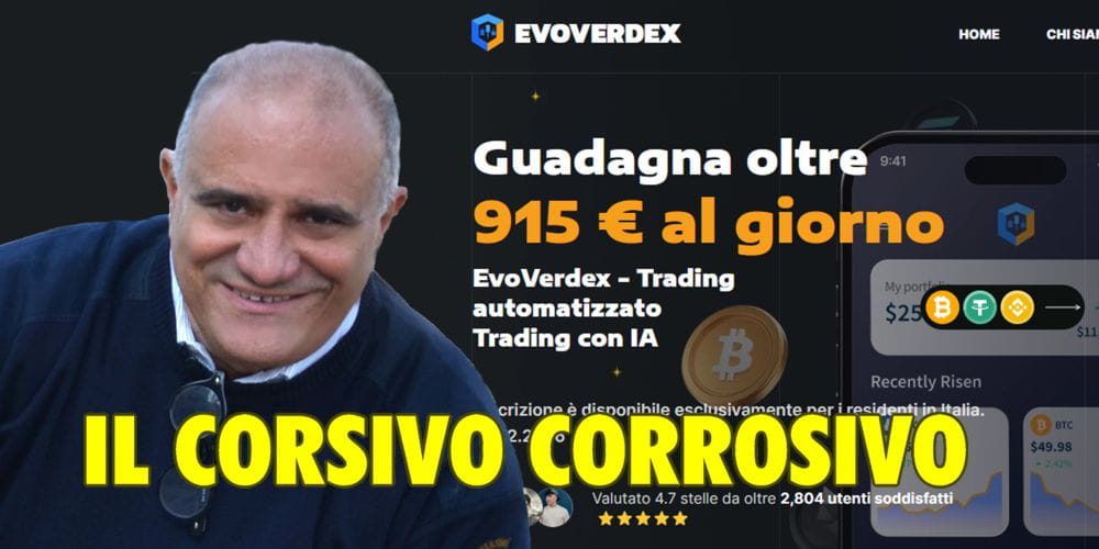 Altre stupidaggini vengono messe in bocca a Massimo Sideri che da inviato ed editorialista del Corriere della Sera, figura di riferimento nella divulgazione tecnica e scientifica, sarebbe diventato “giornalista finanziario” e soprattutto “difensore dei consumatori”. A lui vengono attribuite alcune confortanti dichiarazioni come “Metto spesso in guardia contro soluzioni poco trasparenti, ma EvoVerdex funziona diversamente. È una piattaforma di trading automatizzata che elimina la complessità. Il sistema è progettato per essere trasparente, intuitivo e sicuro, rendendo il trading profittevole e accessibile anche ai principianti assoluti. Per gli investitori di Italia che richiedono affidabilità e prestazioni solide, rappresenta un approccio solido e degno di fiducia”.
